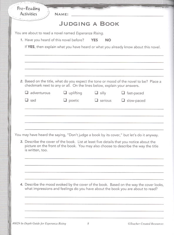 Esperanza Rising In Depth Guides For Great Literature Rigorous Reading Teacher Created Resources 9781420680294