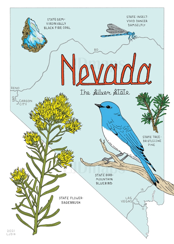 . Nevada State Flower Print NV State Bird Print Fine Art Giclee Print. Mountain bluebird Sialia currucoides 1967 Animal. The United States Postal Service created the definitive renderings of our 50 Official State Flowers and Birds with the classic 50-stamp.
